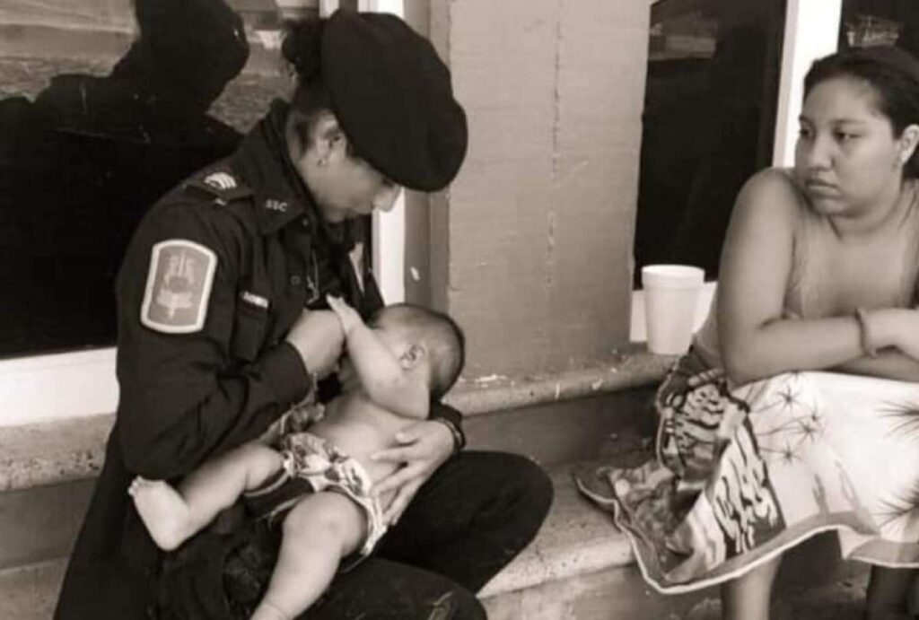 Policía dio de lactar a un bebé afectado por el huracán Otis