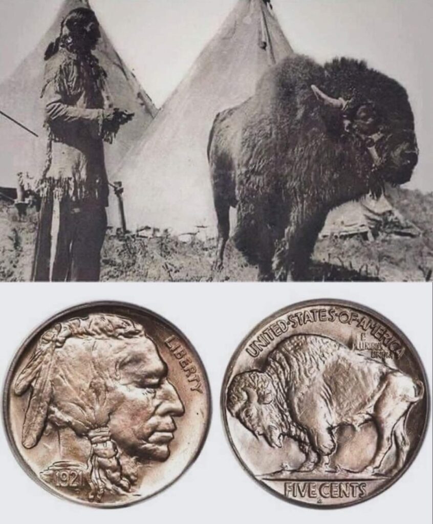 Imagen histórica. Indio nativo “Cola de hierro”, con el Bisonte “Black Diamond”, aclamado como el más grande de su especie que en su mejor momento pesaba más de 1,500 libras. Ambos sirvieron de modelo de la famosa “Indian Head Nickel”, moneda de Cinco centavos.