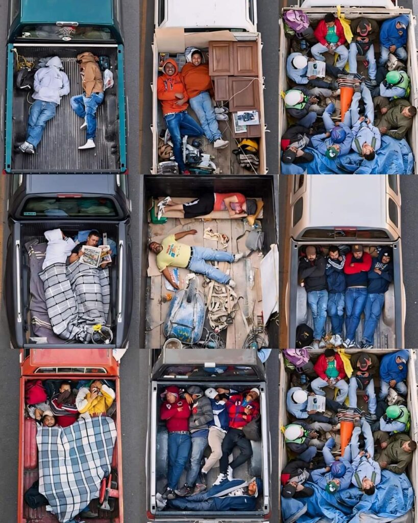 Las fotografías pertenecen a Alejandro Cartagena de su serie “Carpoolers” y fueron tomadas en Monterrey. Mexicanos rumbo a sus lugares de trabajo.