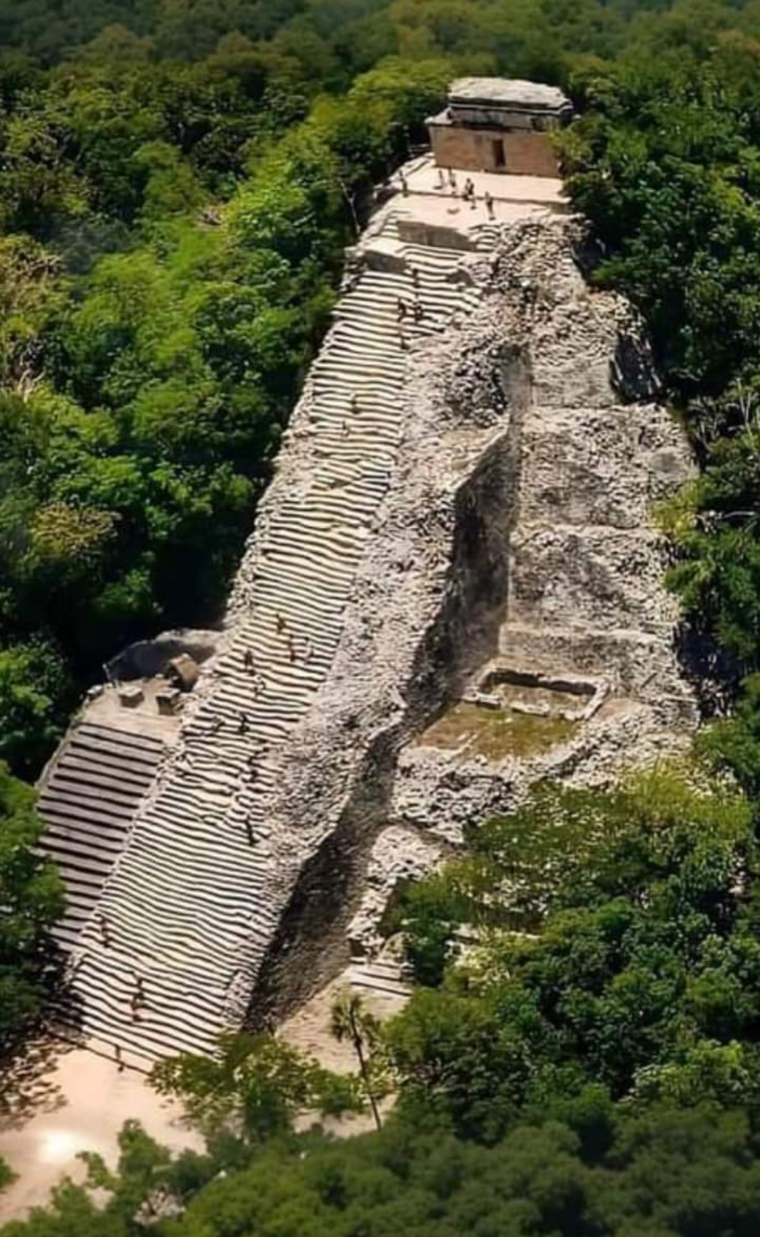 A diferencia de las pirámides de Chichén Itzá o Uxmal, esta sigue permitiendo a los visitantes escalar sus 120 escalones, ofreciendo una vista espectacular de la selva que la rodea. Construida entre los años 500 y 900 d.C.